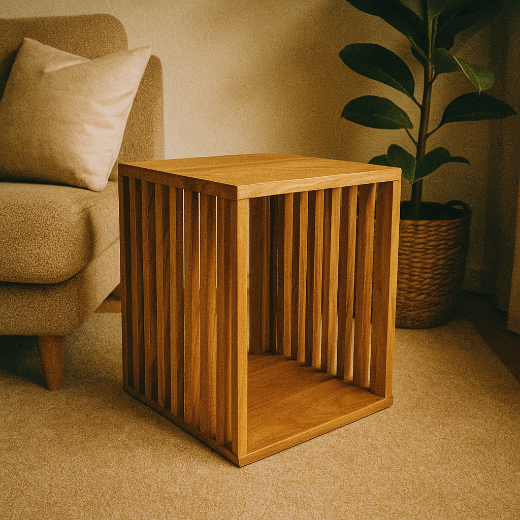 Jardinière en bois – jardinière de balcon – fait main – lattes verticales en bois – 45x35x35 cm